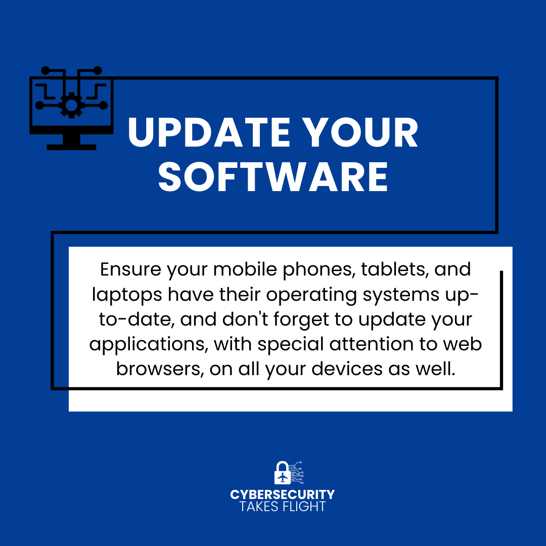Join us this October as we empower the aviation community with the knowledge and tools needed to stay safe and secure in the digital digital world. Throughout this month, we will be emphasizing the importance of cybersecurity practices and share insights to help protect against evolving online threats.